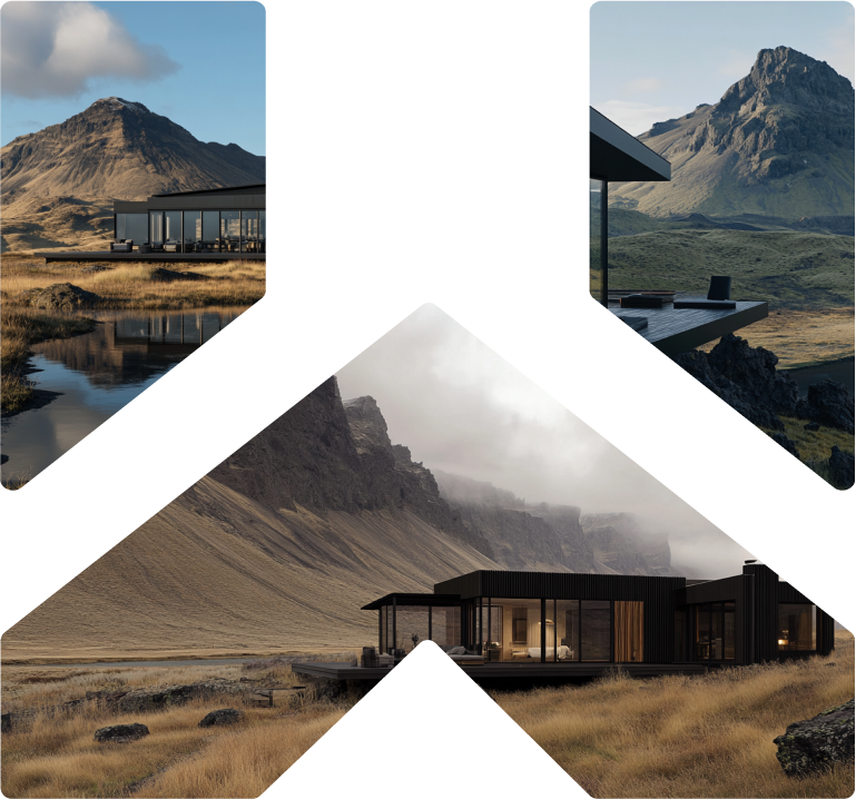 Fyrsta samfélag Heimkomu eru þrjú lúxus hús hvert að verðmæti um 120 milljóna króna.