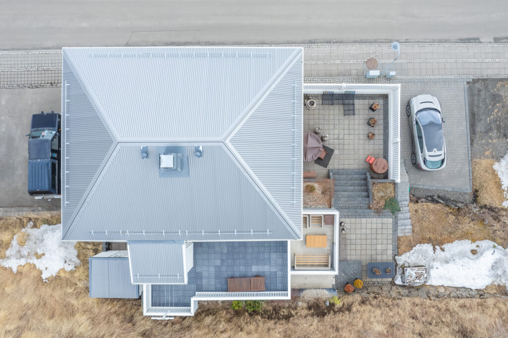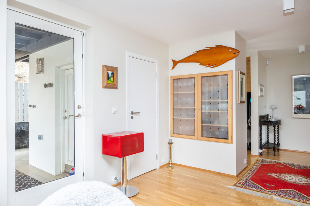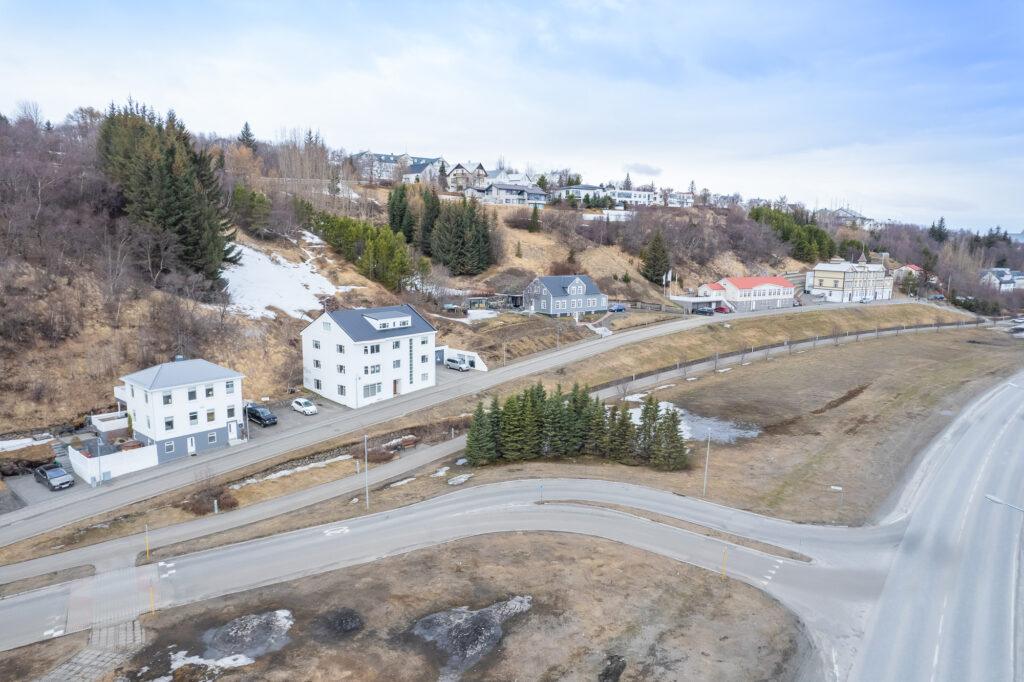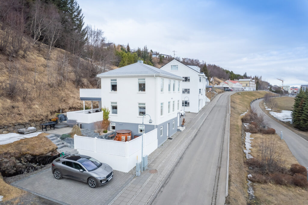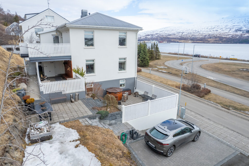Húsið stendur við Hafnarstræti á Akureyri, örstutt frá miðbænum en samt á rólegum og fallegum stað. Héðan er frábært útsýni yfir Pollinn og fjöllin í kring, sem gerir staðsetninguna bæði einstaka og mjög eftirsótta.