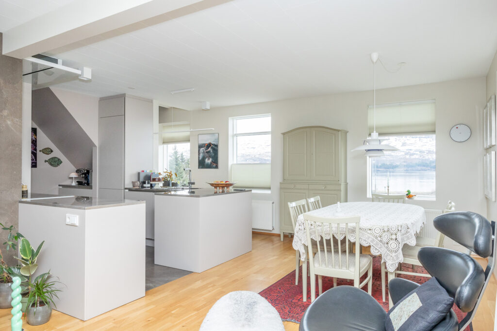 Það er stutt í miðbæ Akureyrar, veitingastaði, menningu og allt það sem bærinn hefur upp á að bjóða. Á sama tíma er húsið á stað þar sem ríkir ró og fallegt útsýni.Hér fyrir neðan má sjá nákvæma staðsetningu hússins á korti.